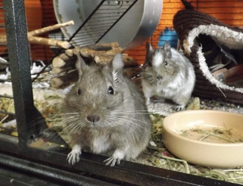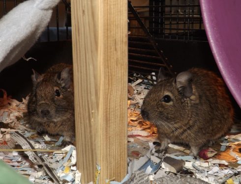 Degus are such fun to watch. The girls are 5 years old. They came in due to the family’s domestic abuse and I am guessing…