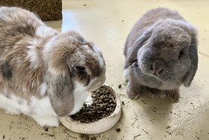 Hazel & Chip came into together in June 2025, as their family moved house. Hazel (on the left) was aged six and Chip (on the right) is around three years old. Hazel has dental issues and arthritis. Chip is currently in good health so keeps Hazel company. Both are friendly, curious rabbits who will run up to be fed.