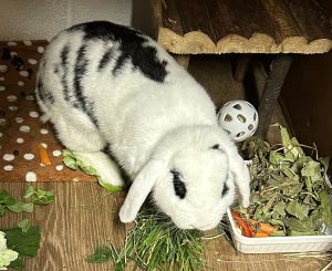 Matt is a young, friendly rabbit who came in aged eight months in August 2025. Sadly he come in with dental disease so will need regular dentals and won’t be up for adoption. Matt is currently being bonded with Steph and if all goes well, he will live his life with Steph in the retirement block.