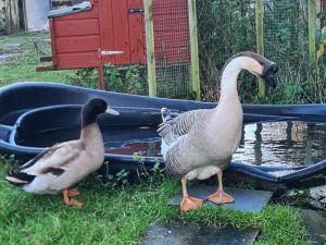 Melvin came to us at in October 2025. Lucy has been at the shelter much longer, around 15 years, and came in as she was territorial with her flock so would attack anyone that came near them. Lucy loves all her flock at the shelter and is probably the noisiest resident here!